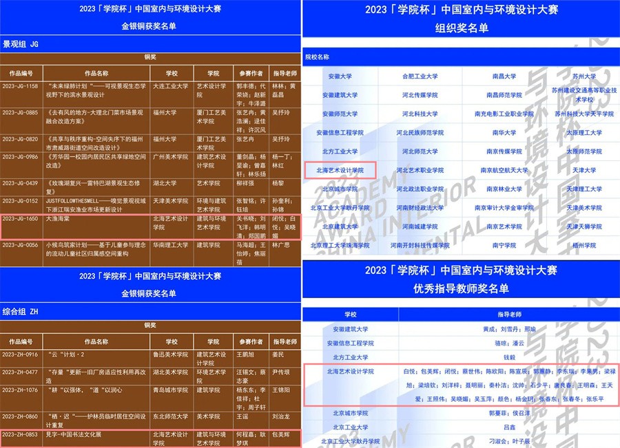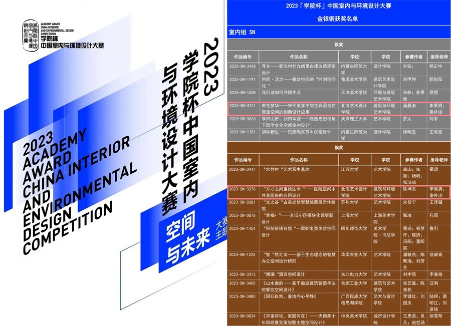 喜报│建筑与环境艺术学院在2023年“学院杯”中国室内与环境设计大赛再获佳绩