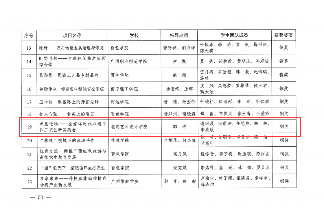 喜报│美术学院师生在第七届中华职业教育创新创业大赛广西区赛喜获佳绩