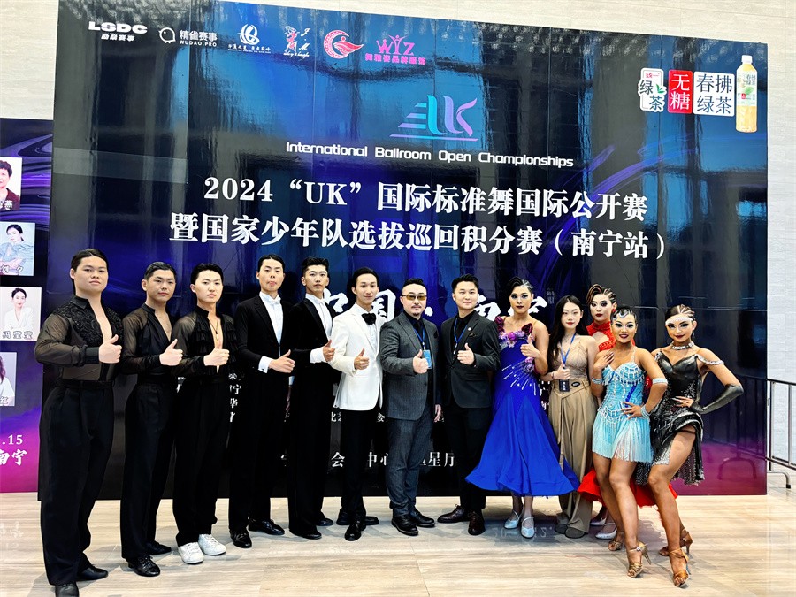 近日,2024“UK”国际标准舞国际公开赛暨国家少年队巡回积分赛在南宁举办。我校舞蹈学院参赛队伍在大赛中共获得专业院校A组拉丁舞冠军;高等院校双人C组冠军、D组冠军;专业院校摩登舞单项(华尔兹)冠军;摩登舞单项(华尔兹)亚军;高等院校单人B组拉丁舞冠军。学校荣获优秀组织奖。