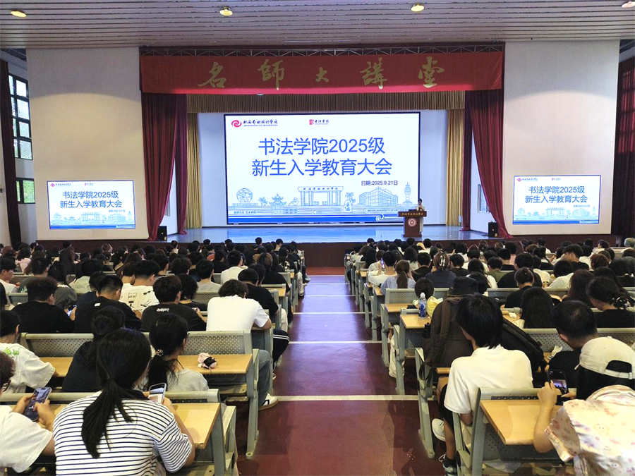 为引导新生适应大学环境、确立学业规划并强化安全意识,9月21日,书法学院于西校区大礼堂组织开展2025级新生入学教育大会,围绕专业前景、安全意识、规章制度、理想信念、学业导航等多个模块展开,帮助新生完成心理转型与角色转换,快速融入校园生活。学院领导、全体教师及2025级全体新生参加会议。