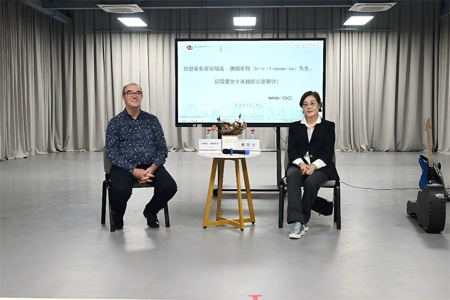 11月5日,法国著名古典吉他演奏家埃瑞克・佛朗塞利与旅法长笛演奏家郝雪雯女士受邀莅临我校,以“长笛与吉他合奏实践中的协同策略——从个体技巧到整体表达”为主题,为学校师生开展了一场兼具专业深度与艺术魅力的交流研讨活动。