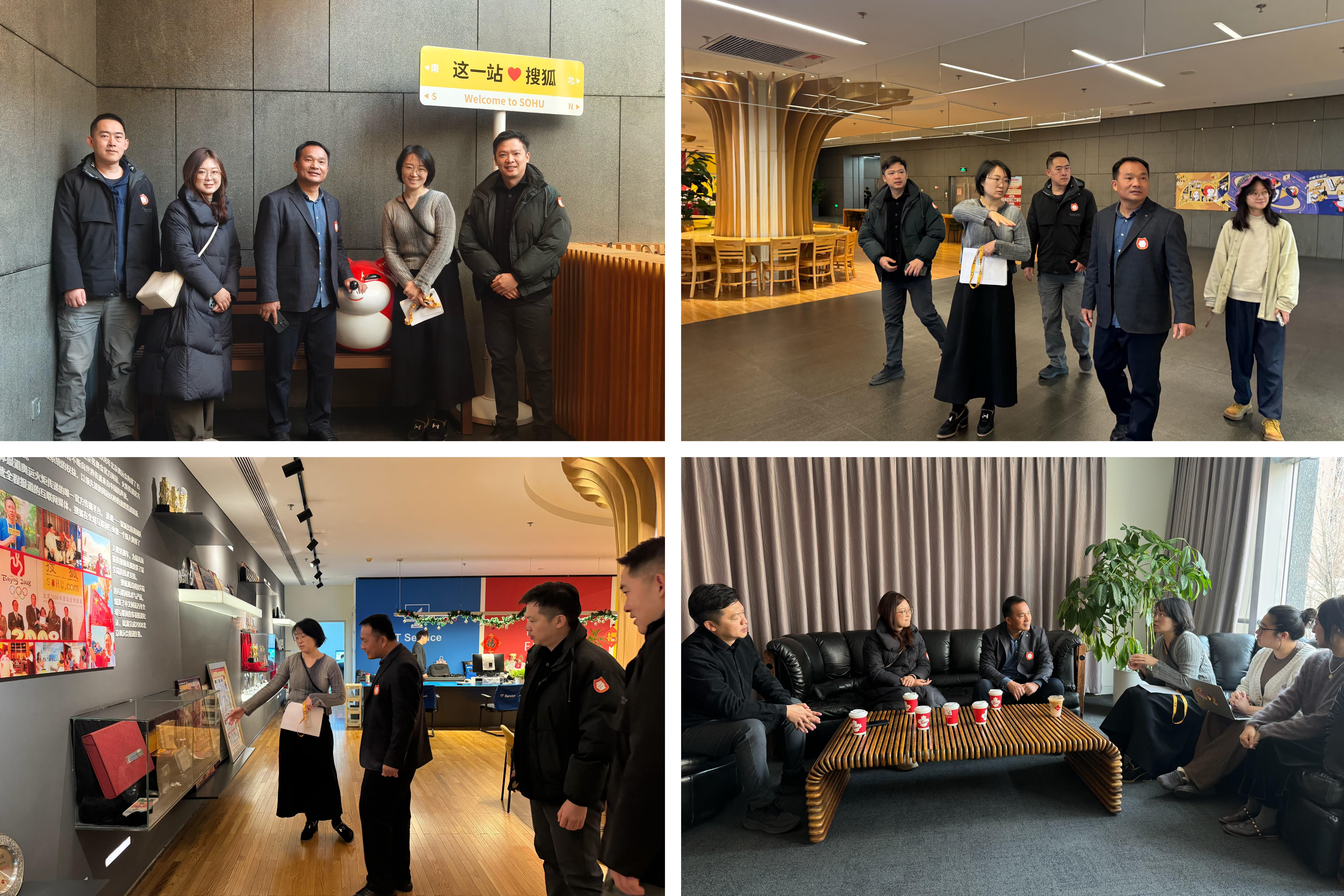 随后,专项调研组到访搜狐新媒体信息技术有限公司。该集团人事负责人罗令、郑思晨等工作人员首先对我院过往支持往届搜狐视觉设计大赛的工作表示感谢,随后系统介绍企业发展历程、核心业务布局及特色企业文化,并结合近年校园招聘实践提出建议:高校设计类专业学生应打破专业壁垒局限,主动拓宽行业视野,深入了解市场动态与产品全生命周期流程,同时积极参与企业实习实践,提升职场适配能力。据介绍,搜狐设立的黑马大赛专为挖掘设计领域新锐人才打造,优秀参赛者可直接获得企业实习资格,该“以赛选人”模式有效实现校企资源双向赋能,构建起良性互动的校企合作循环机制。