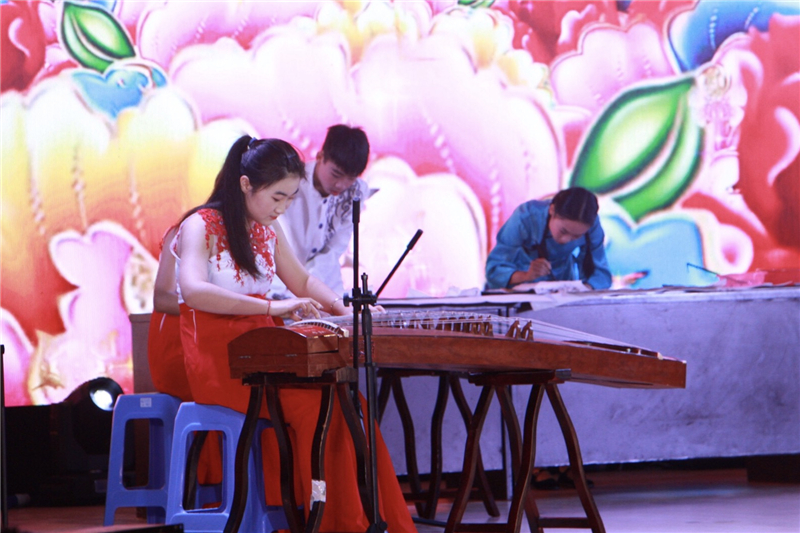 民乐团的《山丹丹开花红艳艳》用乐器传递着贯彻十九大精神,不忘初心,砥砺前行。