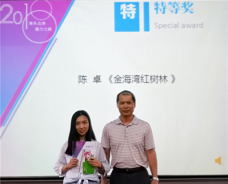 本次奖项分为特等奖、一等奖、二等奖、三等奖和优秀奖。本次荣获特等奖的是我校视觉设计本科1707班的陈卓的《金海湾红树林》,指导老师:白建强;