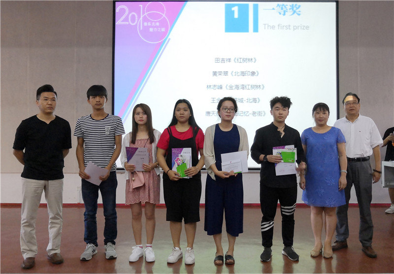 一等奖为视觉设计本科1602班田吉祥的《红树林》、视觉设计本科1708班林志峰的《金海湾红树林》、视觉设计本科 1704班王金雪《珠海•北海》、环境艺术设计本科1607班唐天楠的《北海记忆•老街》;