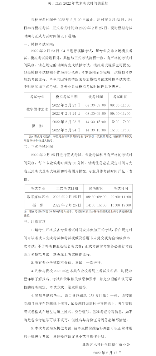 北海艺术设计学院2022年艺术类专业 校考结果查询及复核办法