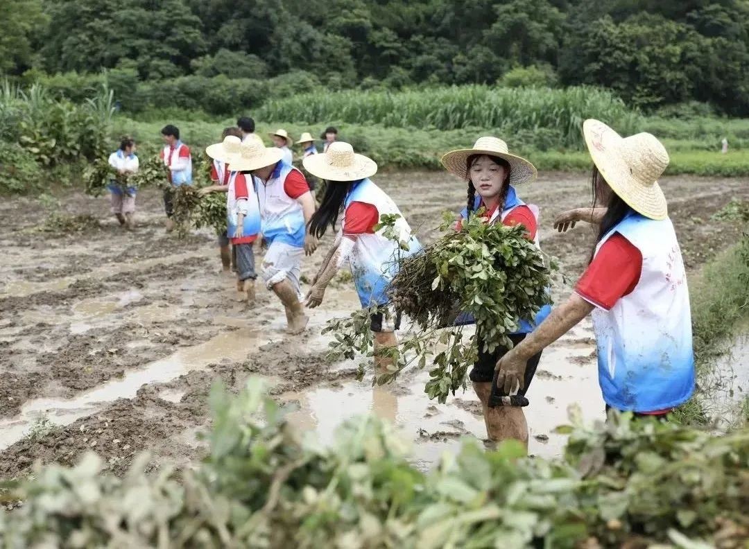 志愿者们分为两队,一队开展了助农采摘打包荔枝,另一队走到田地采摘花生,从源头了解花生的生长,亲身体会当地农民劳作的艰辛。
