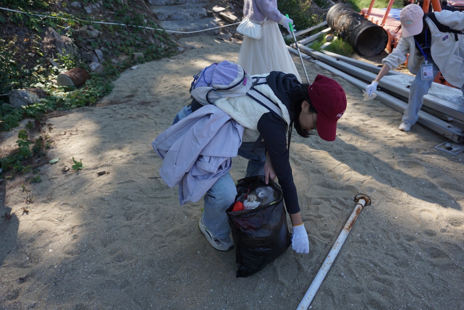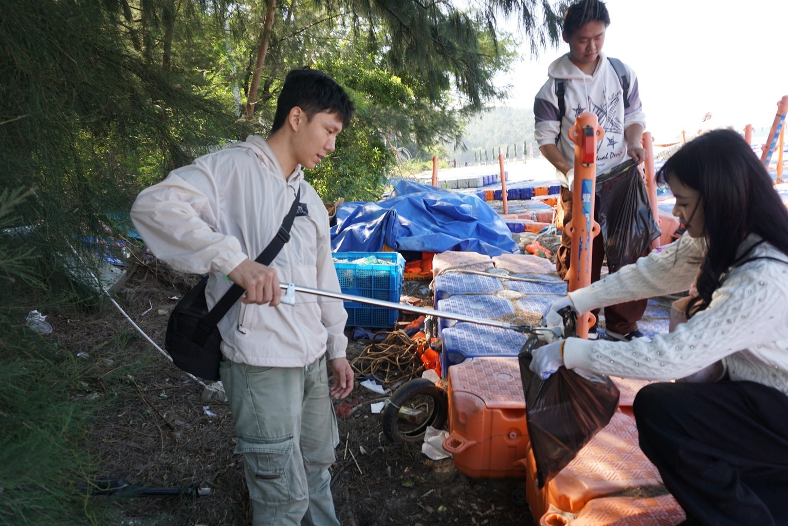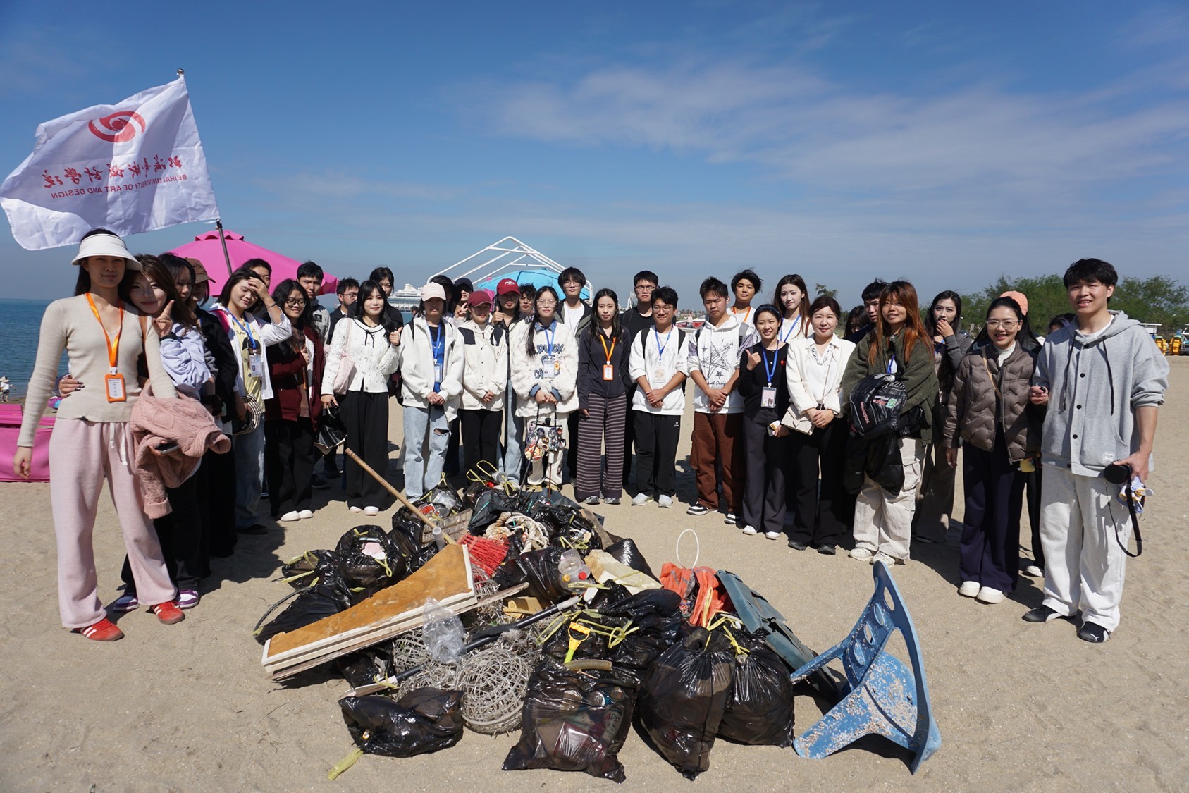 随后,工作人员通过抽签将同学们分为六组,并发放清理工具,开展“净滩护海”环保挑战赛。各小组认真捡拾塑料瓶、烟蒂等垃圾,并进行规范分类与称重记录。活动增强了同学们的生态文明意识与集体荣誉感。